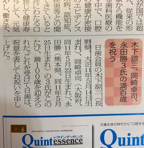 いろいろな方からお祝いの言葉をいただきながら、父が百歳を迎えたことを歓んでおりますが、永らく父親の介護に携わって、実は長生きは必ずしも本人にとって幸せなことではないなと感じています。